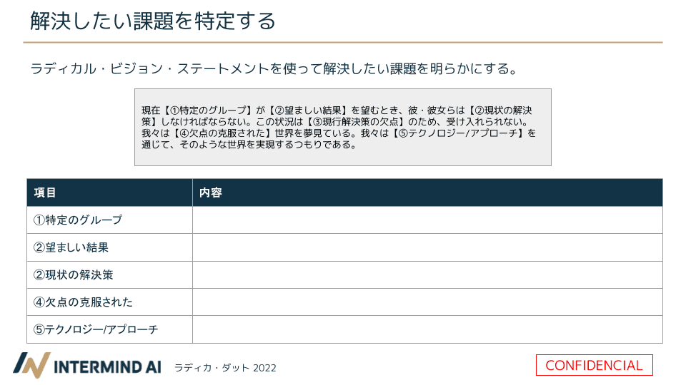 講義後半では生成AIアプリケーションを設計するワーク式の演習を行います。コースで学んだ内容を活かしながら、ユーザー・課題の特定から、システム要件、技術構成を詳細に設計します。学んだ内容をすぐに設計に落とし込むことで、LLMの仕組みや生成AI技術に関する理解をさらに深めることができます。