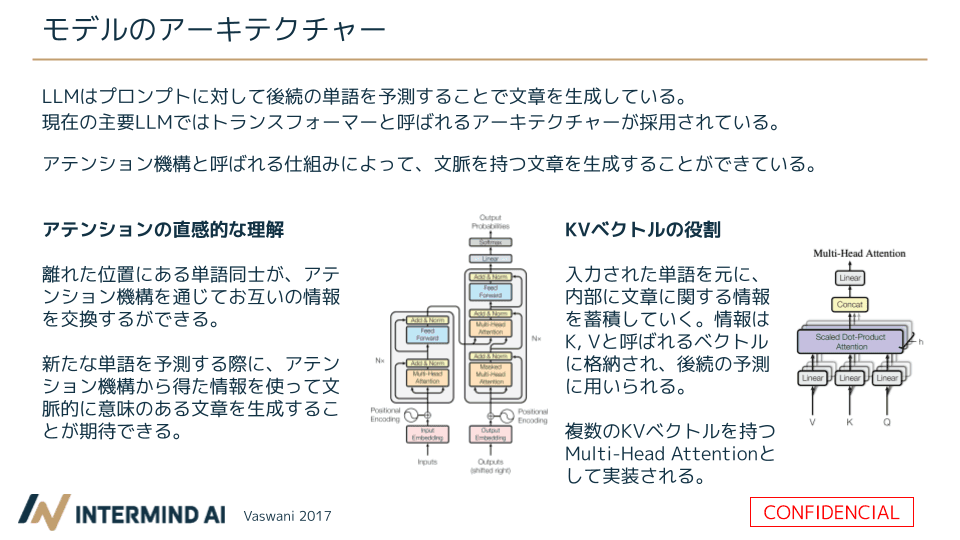 本コースでは、LLMをその仕組みから直感的に理解できるためのコンテンツを用意しています。LLMの仕組みを理解することで、LLM特有の挙動を事前に予測・制御し、業務プロセスにアプリケーションを上手く組み込むための勘所を知ることができます。